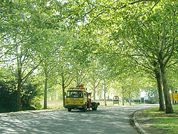 大きな並木のある道を通過。