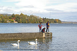 さあ、湖畔に降りて、昼食タイムにしよう。