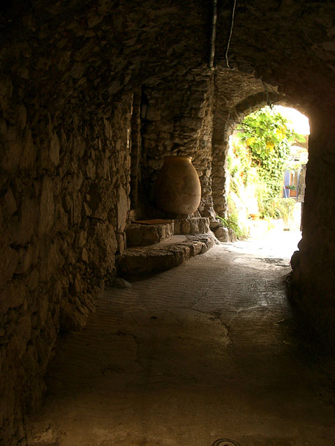 石造りのアーチと木漏れ日がいい感じ
