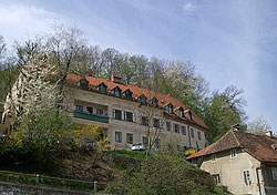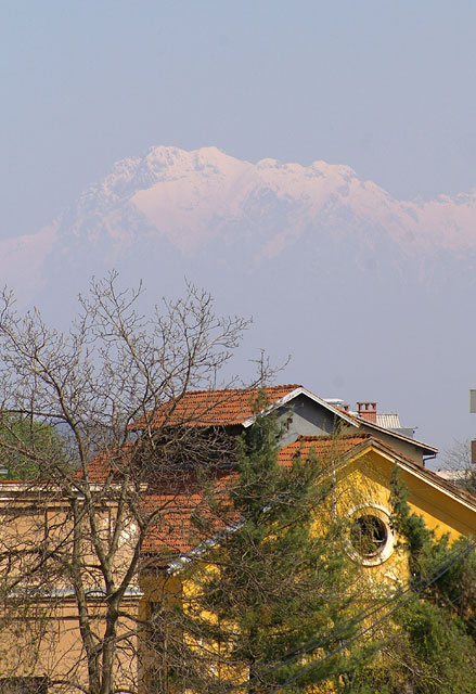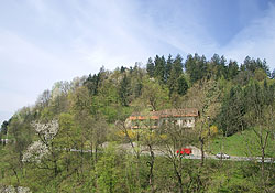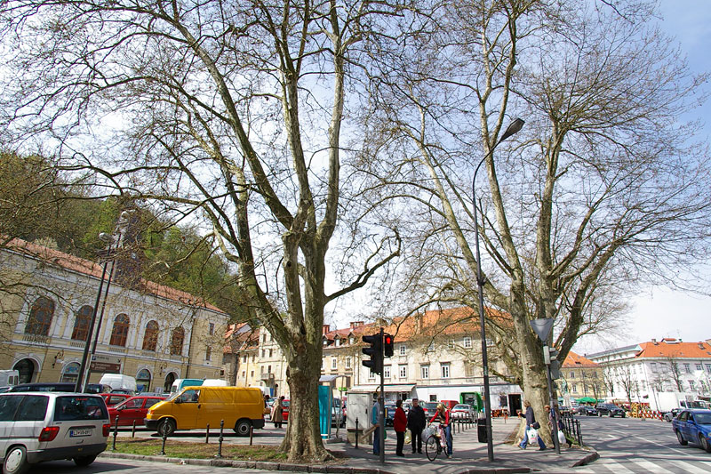 -木々の隙間から、リュブリャーナ城が見え隠れ。。