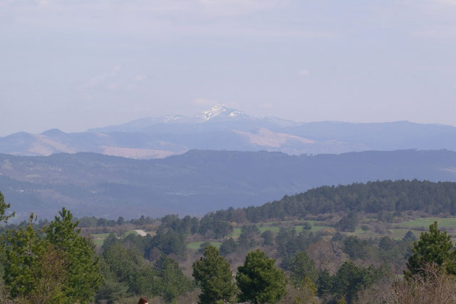 -振り返ると、遠くに雪山が見えます。