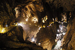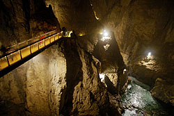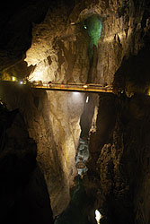 洞窟内に橋が架かっている。
