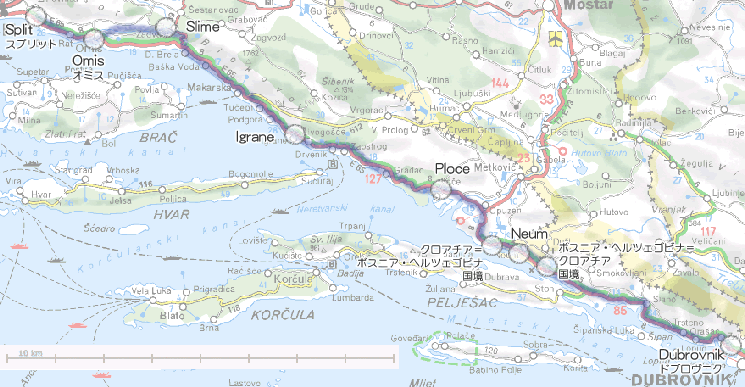 Igrane、Ploceを経て、ボスニア・ヘルツェゴビナ領に入りNeumという町を通過、