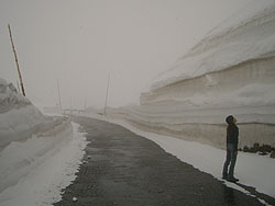 -雪壁の道が続く