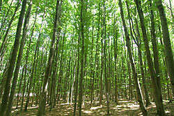 -峠付近は、深い森に覆われている。