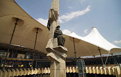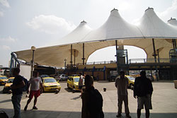 駅舎前にはこの変なカタチのテントが。