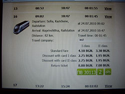 これは、ソフィアからのエクスカーションに備えて、時刻表検索。