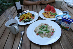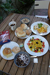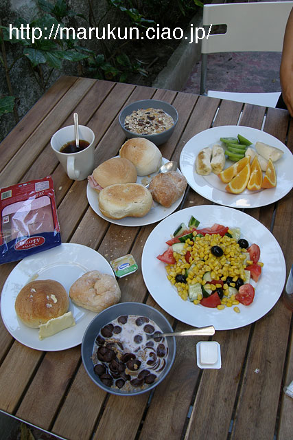 - -今日も宿のテラスで朝食。