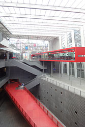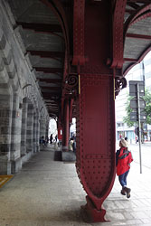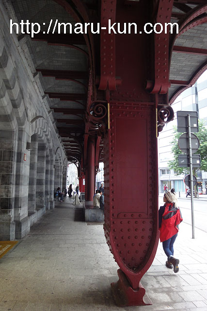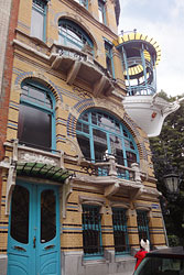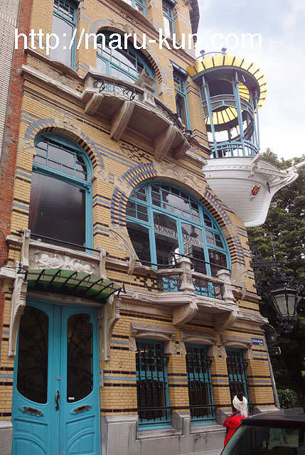 - -ユニークな外観の建物の横を急ぎ足で通り。。。。