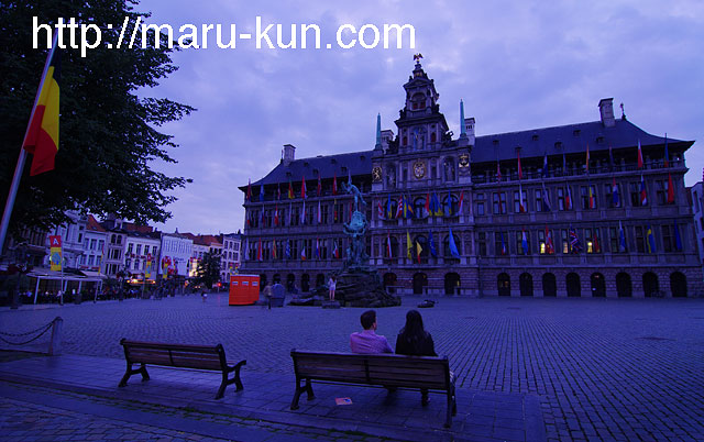 ひっそりとした市庁舎前広場のグローテマルクト。