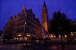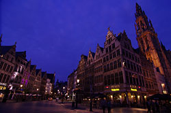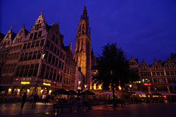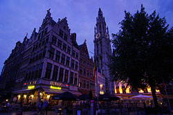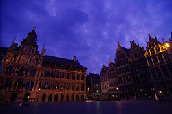 青の時間にライトアップされた歴史的建造物は美しいが、