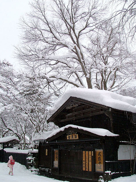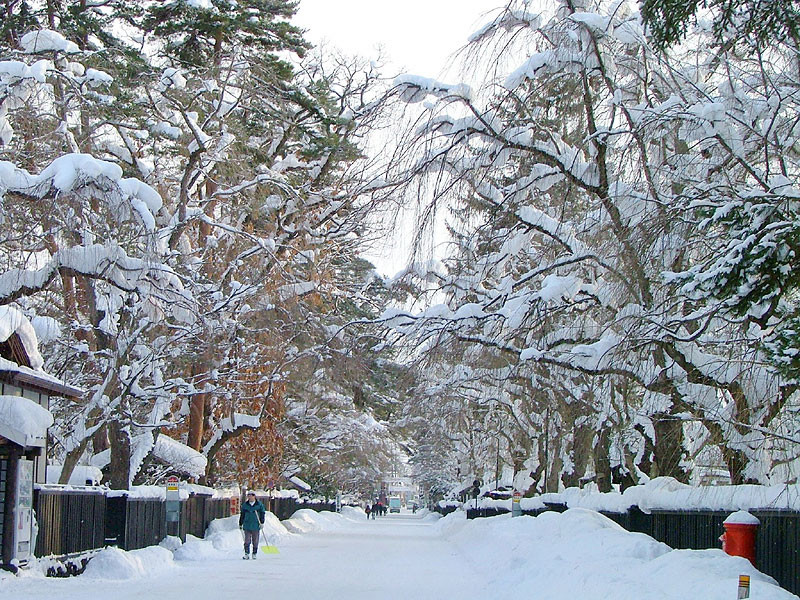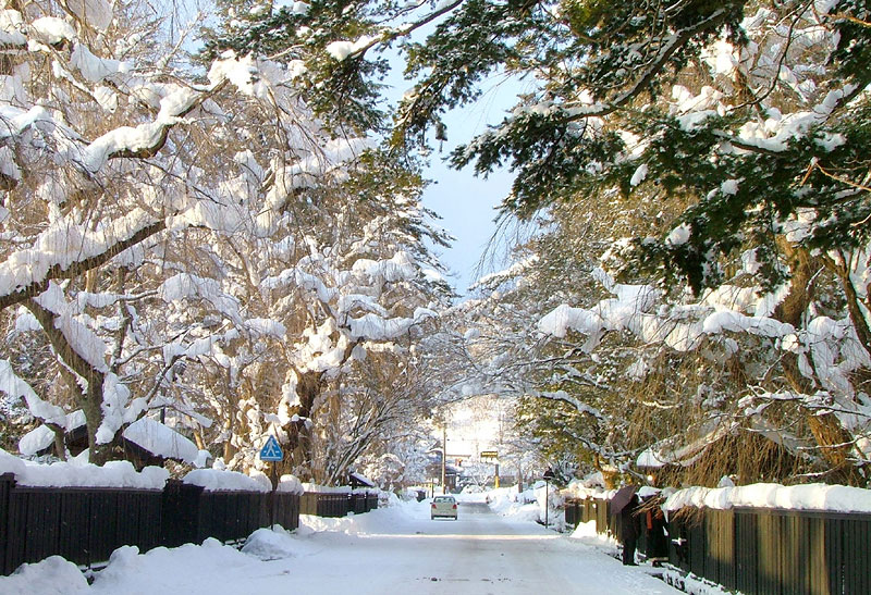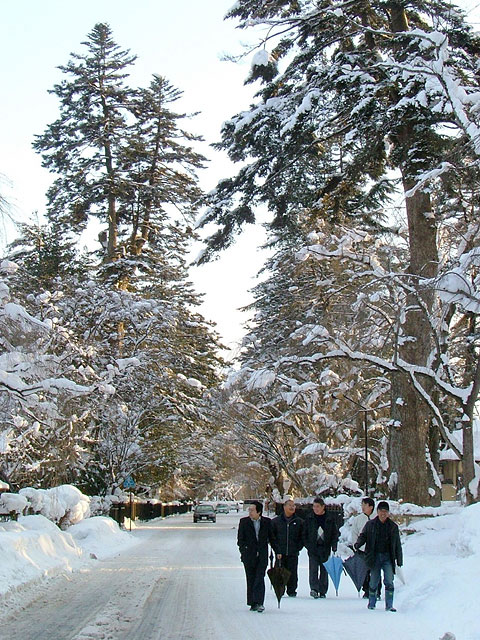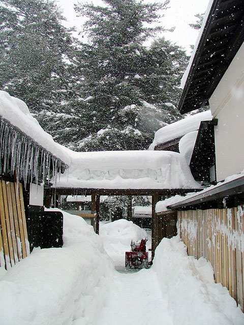 厳重な雪囲いでおおわれている。 こちらの降雪量は半端じゃない。 散策している間も、どんどん降り積もっていく。。 - -このあと天気が急に良くなり、青空がでできました![]() 降りしきっていた雪も完全やんで、晴れて来た