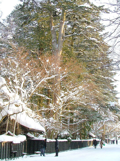ちょっと武家屋敷の敷地に入ってみます。 入ってすぐのところに雪吊りがあるが、中にまで雪が侵入している こちらは別の武家屋敷-