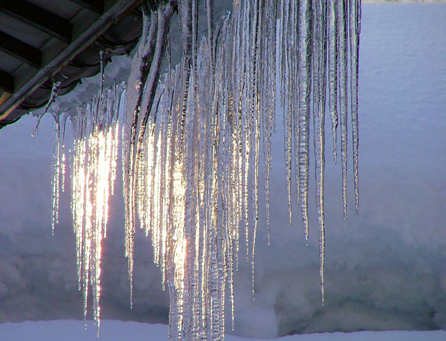 -そして、ついに日が差してきた光を浴びるつららが美しい。 ![]() 周りの山も色彩を帯びる。。。