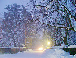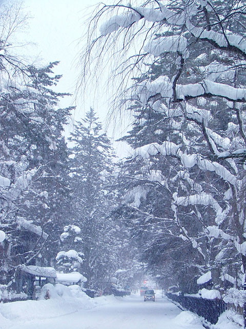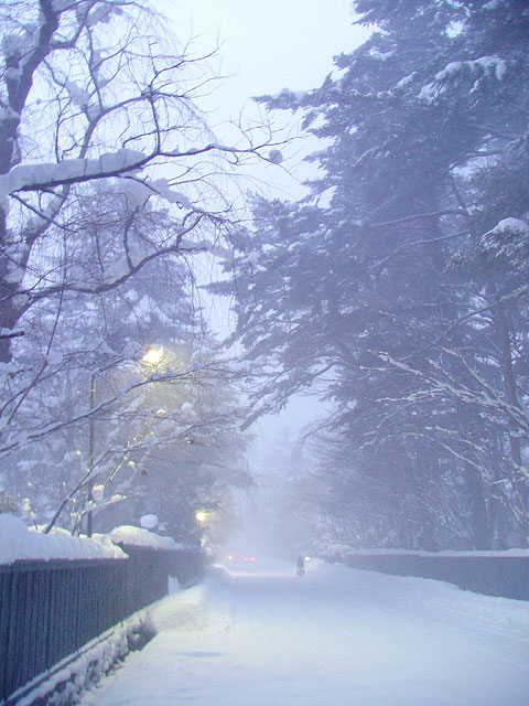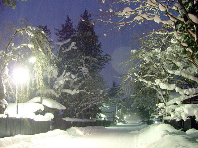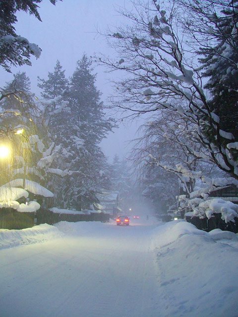 -![]() 晴れたのも束の間、すぐにまたどんよりと曇ってきて、 また降り出してきた。 桜の木も、積もった雪が重そう。。。 + すっかり日も暮れてきました + ![]() 日が暮れて街灯が灯る。 あいかわらず雪が降りしきっていて、なかなか幻想的。。。 子供も家へ帰る-