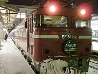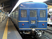 -![]() 秋田からは寝台特急『日本海』号に乗り換え。 車両は昔ながらのブルートレイン