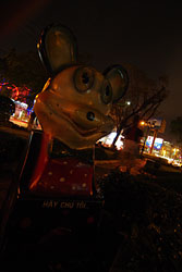 不気味なネズミ型の巨大な人形が。