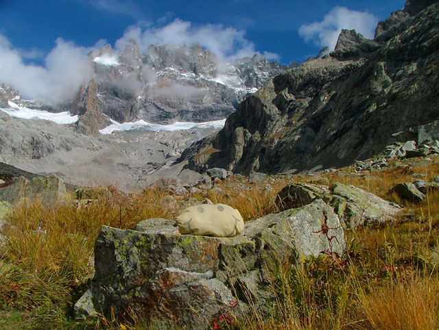 そして。。。 「ら、めーや」がみえました! ここで、ちょっときねんしゃしん。 「ら、めーや」ってとってもけわしいやまですね。 ちょっとだけ、ひょうががのこっています。 きょうはここで、ひきかえします。