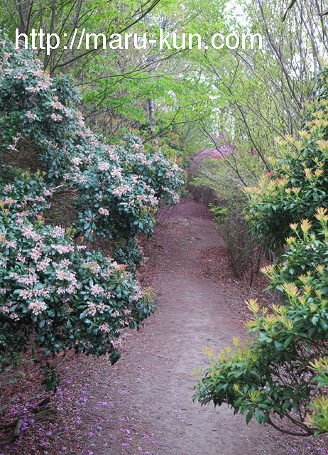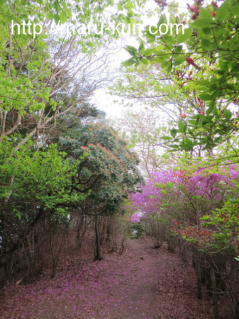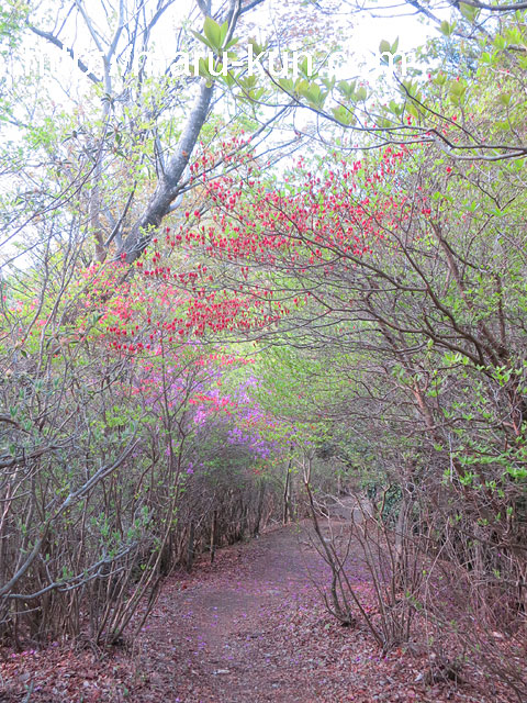+ さあ出発+ 曽爾高原から出発。 曽爾高原の駐車場付近は、すばらしい森。 - - -新緑が出たて。 森散策コースを一周します - - -曽爾高原に戻る。 - -広々とした高原を行く -高原に咲く花。 - -高原の中央部は湿地。 -お揃いの赤いジャージは小学校?の野外活動ハイキング。元気に駆け回っていました。 今日は平日なので、一般のハイキング客はまばら。 -草原を登り切ったところで曽爾高原全体を振り返る -草原の先は、しばらく、人工林 -人工林の隙間から、東方向が見えて来た人工林少し行くと、何故か料金所が- ![]() ひとり500円とのこと。 小屋は無人で、徴収ボックスが備わっていた。 -さらに少し行くと小ピークに。ここから倶留尊山の頂上がよく見えます。 - - -小ピークと倶留尊山のコルあたりは、 シャクナゲの群生地 - - -シャクナゲとツツジが咲き乱れる - - -白い風船型のお花も群生している。 アセビ? この時期はお花ウォッチングがが楽しいですね〜(^^ - -赤に、薄紫のツツジ -or -木のトンネル。 - - -ツツジを見ながらどんどん歩いて行きます。 - -落ち葉のを踏みしめての気持ちいい山道。+ 御殿山到着+